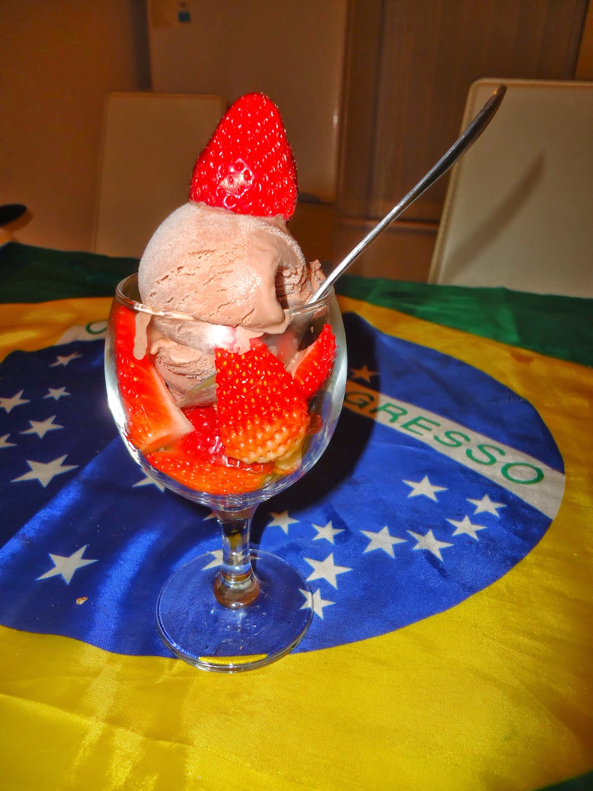Lanche: Sorvete de chocolate 70g (119) + Morangos 100g (39) = 158 kcal